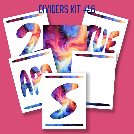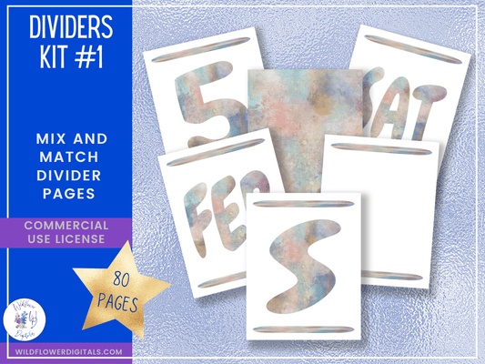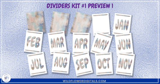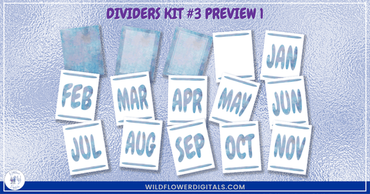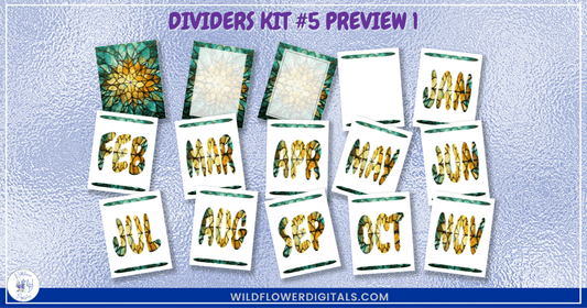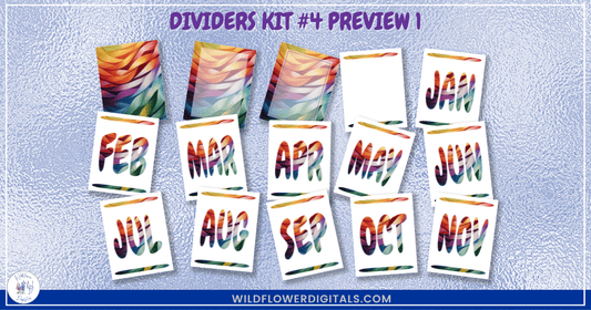 Divider kits include mix-and-match monthly, weekly, daily, and other pages that can be used as divider pages in planners, journals, workbooks, and other projects.