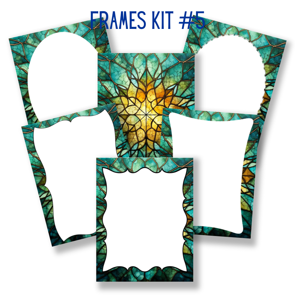 This Frames Kit #5 is a beautiful mini-package of green and gold stained glass designs that comes with 40 different frame styles, complete with commercial use rights so you can use them with: